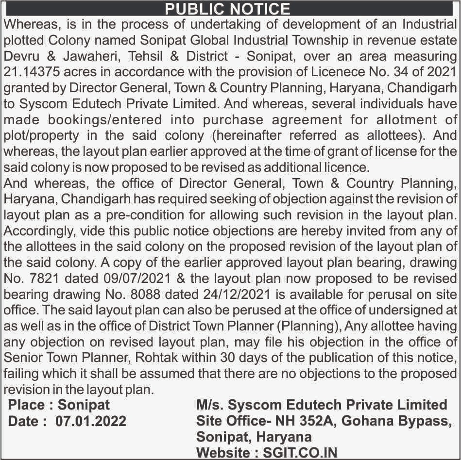ASET (Avni Special Economical Township), NH-352A, Gohana Bypass, Sonipat,Haryana.